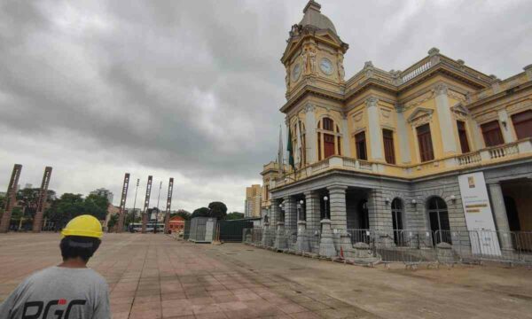 Na manhã desta quinta-feira (19/10), já é possível ver a instalação de tapumes que estão sendo montados em volta da praça pela empresa responsável pela revitalização do local.