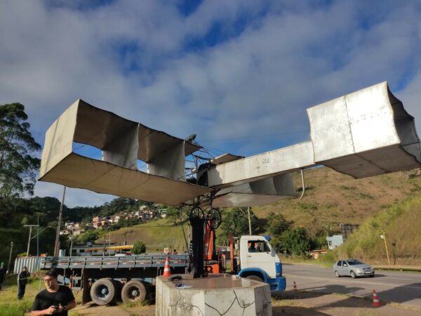 Localidade onde nasceu Alberto Santos Dumont, que completaria 150 anos nesta quinta-feira (20), só recebeu o atual nome em tributo ao inventor há 91 anos. Monumento do 14 Bis na entrada da cidade de Santos Dumont, na Zona da Mata mineira.