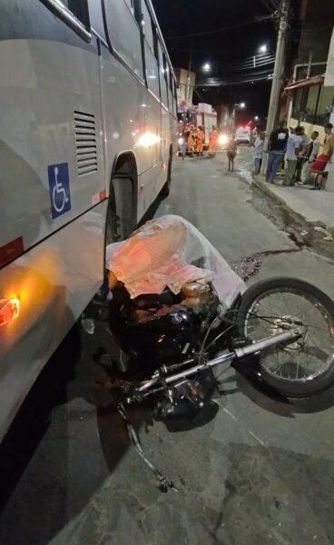 Jovem de 21 anos bateu na lateral do coletivo que fazia a linha 412 na noite da sexta-feira (4) e morreu na hora. Motociclista de 21 anos bateu contra lateral de ônibus e morreu ainda no local