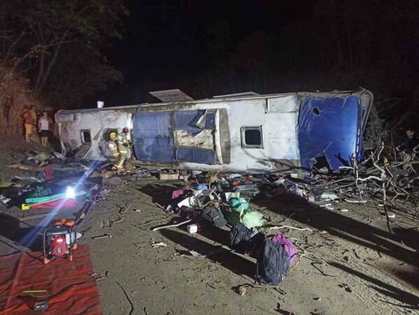 Ônibus tomba em rodovia, dois morrem e 17 ficam feridos