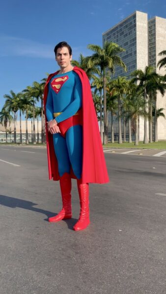 Leonardo Muylaert, de 35 anos, chama atenção pelo porte físico que lembra Christopher Reeve e outros personagens que interpretaram o super-herói no cinema. Além de cosplayer, ele também diz querer levar gentileza e bondade nas interações com público e seguidores. Leonardo Muylaert, de 35 anos, é de Brasília e já fez aparições de Super Homem em Juiz de Fora e Rio de Janeiro
