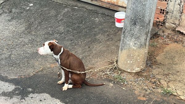 Pitbull é abandonado amarrado em poste