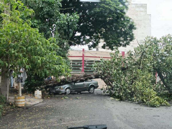 Árvore cai sobre carro na região central de Divinópolis; três pessoas escapam ilesas