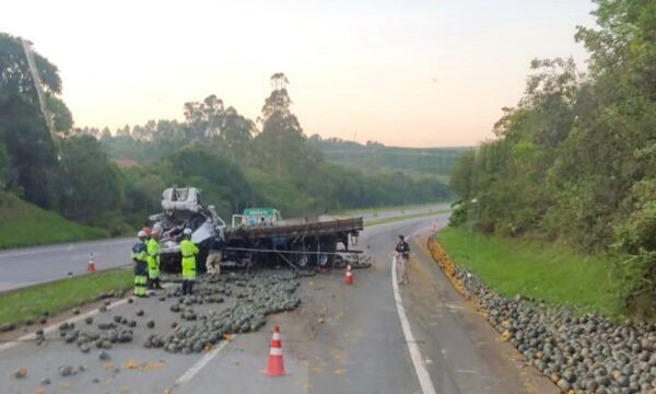 📲 Participe da nossa comunidade e receba no WhatsApp notícias do Sul de MG Segundo a Arteris, o caminhão seguia sentido São Paulo quando, por motivos desconhecidos, teria perdido controle e batido na carreta que seguia na mesma faixa e direção. O motorista do caminhão morreu no local. Caminhoneiro morre após bater em carreta na Fernão Dias, em Santo Antônio do Amparo, MG Redes Sociais Ainda conforme a concessionária que administra a rodovia, com o impacto da batida, a carreta parou aproximadamente 100 metros a frente no acostamento. Um dos veículos estava carregado com abóbora e parte da carga ficou derramada na pista. Conforme a Arteris, a pista precisou ser interditada para remoção dos veículos. Por volta de 9h10, a fila de veículos chegava a 300 metros de congestionamento. Veja mais notícias da região no g1 Sul de MinasFONTE: G1 Globo