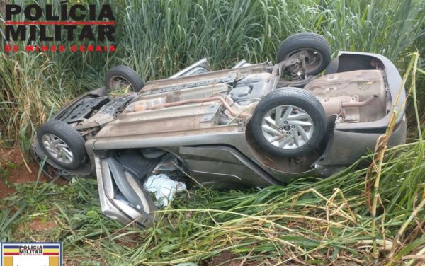 Carro com casal e três filhos capota após ser atingido por outro veículo na MG-050, em Passos, MG