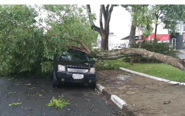 Chuva de granizo com vendaval derruba árvores e causa transtornos em Guaxupé, MG