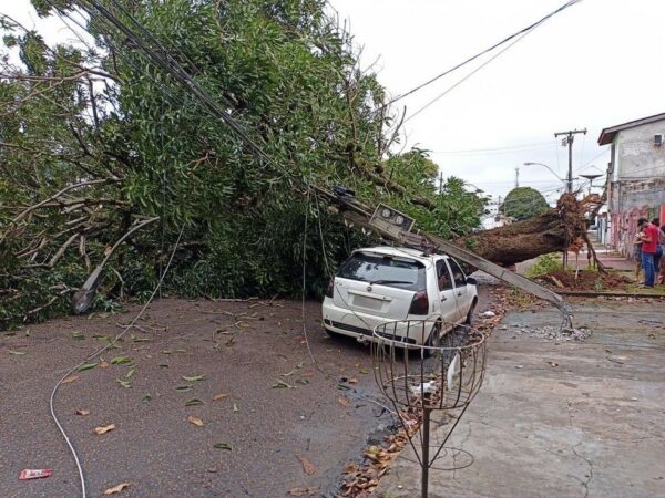 Estrutura de quadra destruída, queda de árvores e carro atingido: temporal causa estragos em Abaeté, MG; VÍDEOS