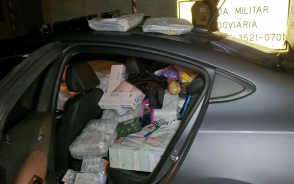 PMR apreende cerca de R$ 100 mil em mercadorias contrabandeadas dentro de carro na MG-050, em Passos, MG