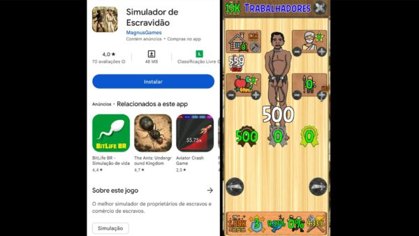 Usuários reclamaram que jogo tinha poucas possibilidades de agressão. Promotoria do caso apura se houve análise humana na liberação do app em loja virtual. Aplicativo foi tirado da Play Store no dia 24 de maio. Jogo 'Simulador de Escravidão'