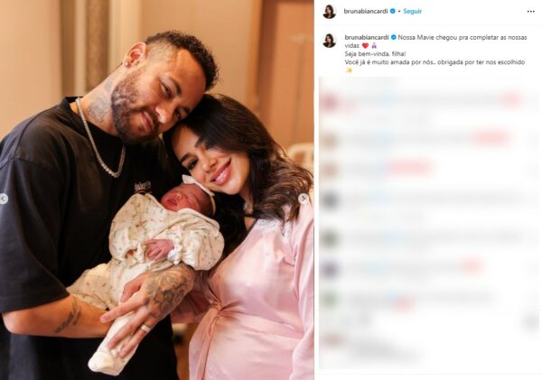 Reprodução/Instagram Bruna Biancardi A modelo Bruna Biancardi e o jogador Neymar Jr. postaram as primeiras fotos com a filha Mavie, na noite desta sexta-feira (6). As imagens foram divulgadas em uma rede social. Compartilhe no WhatsApp Compartilhe no Telegram "Nossa Mavie chegou pra completar as nossas vidas. Seja bem-vinda, filha! Você já é muito amada por nós.. obrigada por ter nos escolhido", escreveu Bruna. Mavie nasceu nesta sexta-feira em uma maternidade da Zona Sul de São Paulo. De acordo com informações apuradas pelo ge, Neymar foi autorizado pelo time Al-Hilal para viajar ao Brasil e visitar a filha. Neymar aparece dando banho em Mavie em foto publicada em rede social Reprodução/Instagram Bruna e Neymar anunciaram a gestação em abril deste ano. À época, eles publicaram um comunicado nas redes sociais. "Sonhamos com a sua vida, planejamos a sua chegada e saber que você está aqui para completar o nosso amor, deixa os nossos dias muito mais felizes. Você vai chegar em uma família linda, com irmão, avós, titios e titias que já te amam muito! Vem logo filho(a), estamos ansiosos por você!" Neymar já é pai de Davi Lucca, de 11 anos, com a influencer Carol Dantas. Neymar recebeu liberação do time para viajar ao Brasil e conhecer a filha Reprodução/Instagram Quem é Bruna Biancardi, namorada de Neymar VÍDEOS: mais assistidos do g1FONTE: G1 Globo