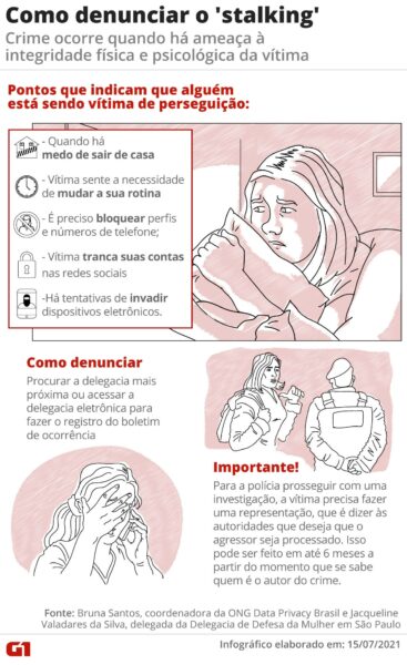 Repórter do g1 foi vítima de um stalker durante quatro anos e conta, em detalhes, o que passou. Stalking é crime desde 2021 e a pena vai de seis meses a dois anos de prisão e multa. Eu fui vítima de stalking durante os últimos quatro anos da minha vida. Dos 18 aos 22 eu fui perseguida, ameaçada, exposta e carreguei um fardo que não me pertencia — e não deveria pertencer a ninguém.